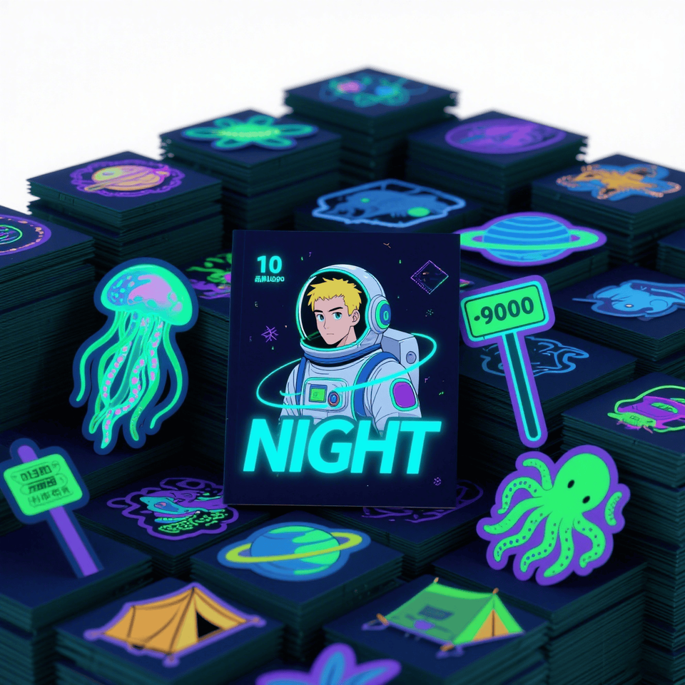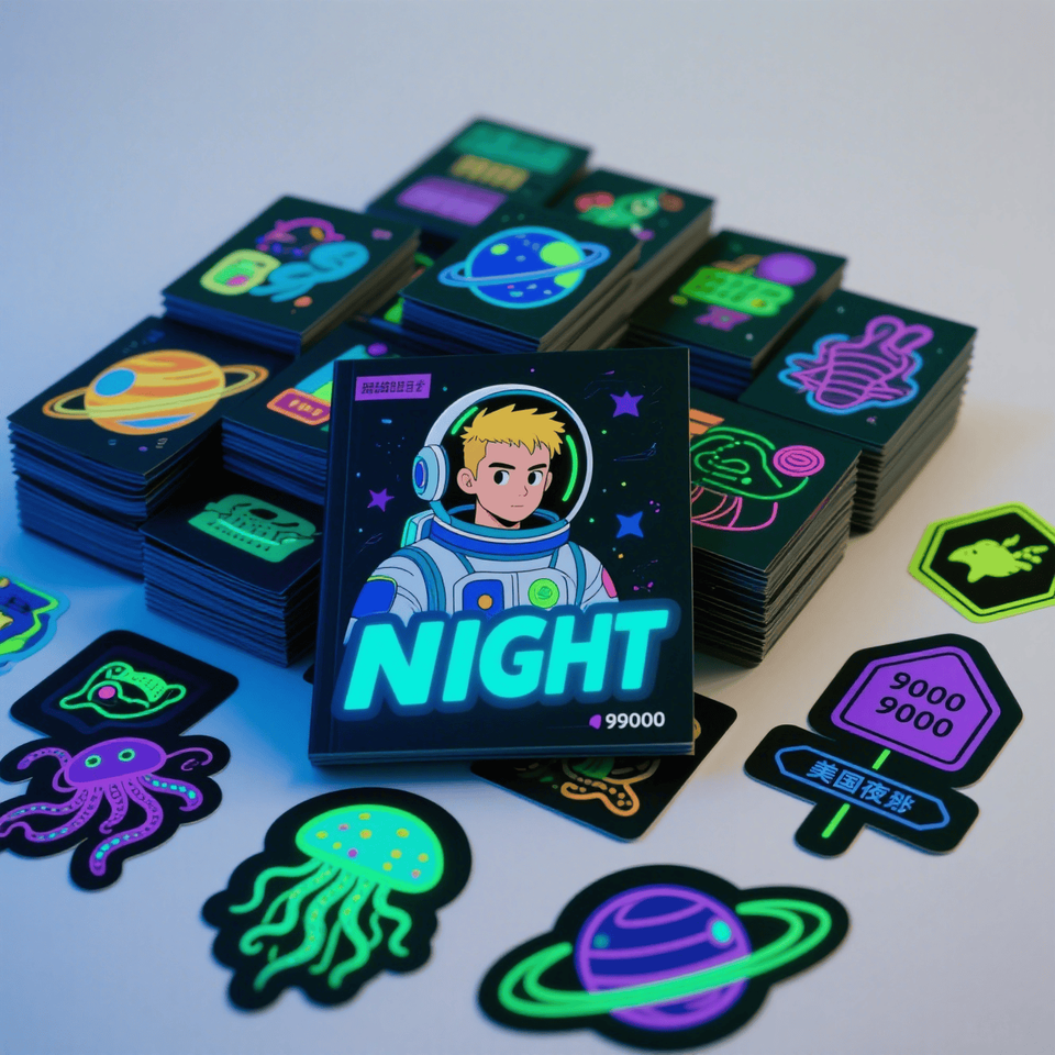 Vinyle auto-adhésif personnalisé découpé ou PVC autocollants d'étiquette lumineux fluorescent clair impression d'autocollants de nuit phosphorescents