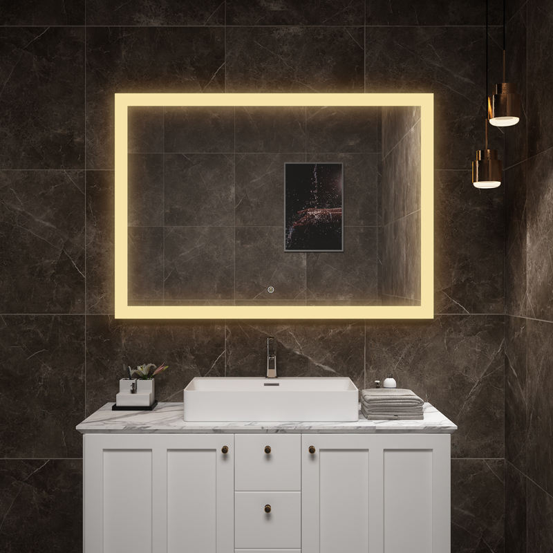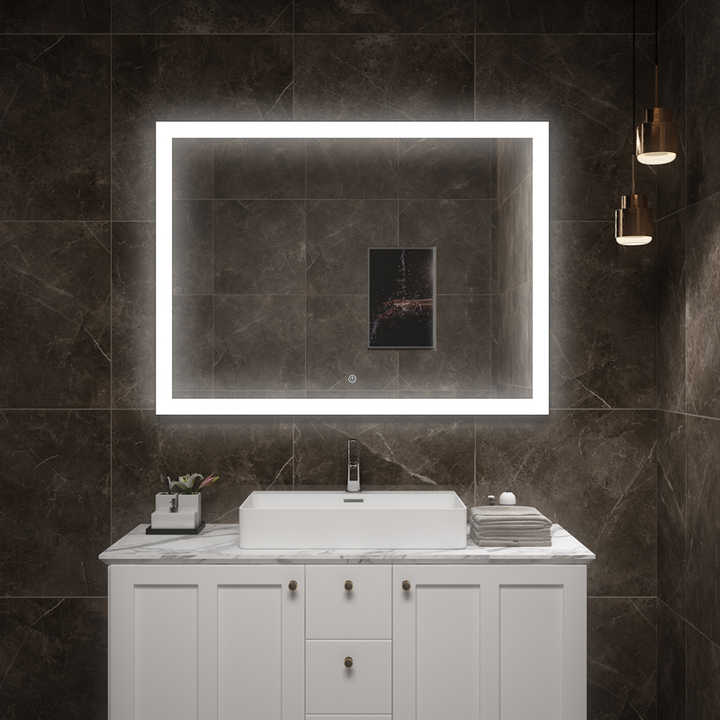 Miroir LED moderne personnalisé à intensité variable et à température de couleur variable pour salon, hôtel, appartement et villa
