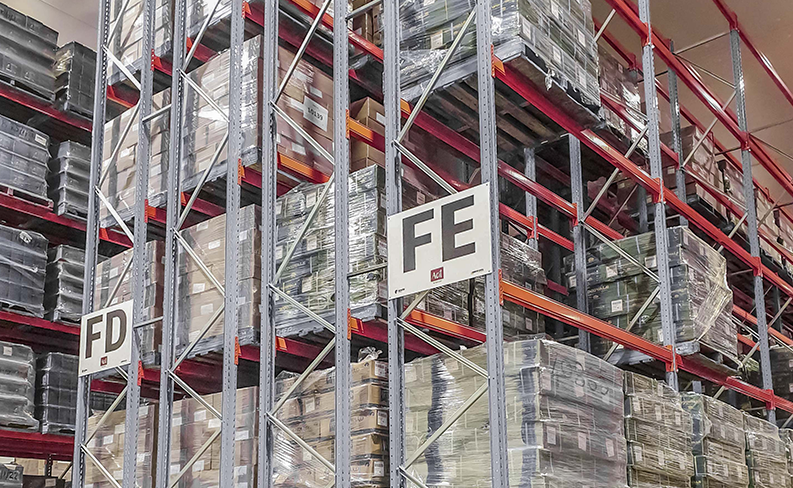 Rayonnage à double profondeur personnalisé pour économiser de l'espace avec verrous de sécurité et protections de montants pour entrepôts modernes de grande taille