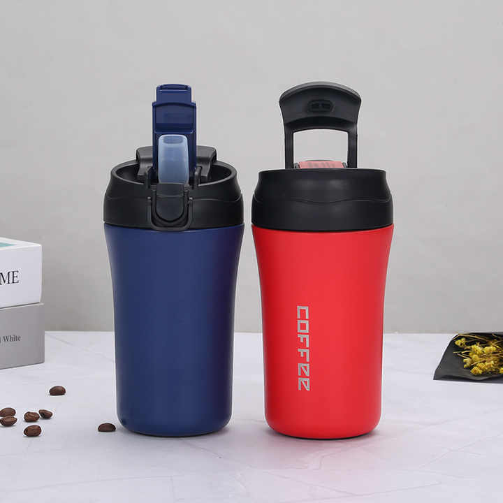 Nom du produit:400ml En Acier Inoxydable Voyage Café Tasse avec de la Paille et Flip Bec