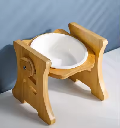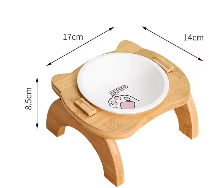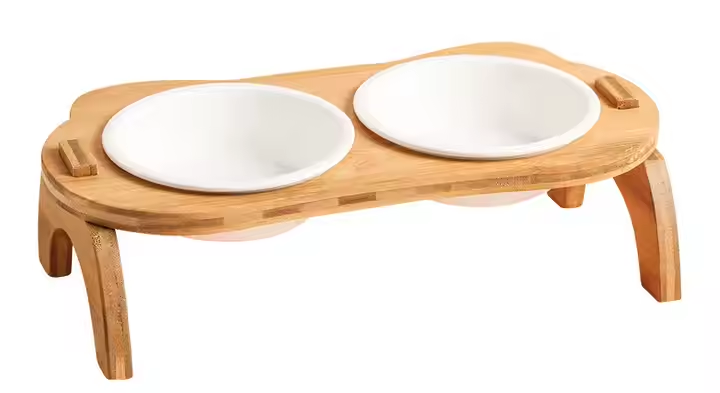 Gamelles doubles en bambou durables personnalisées pour chat/chien Conception surélevée anti-fuite Forme rectangulaire Bois massif Certifié FSC Batterie Love