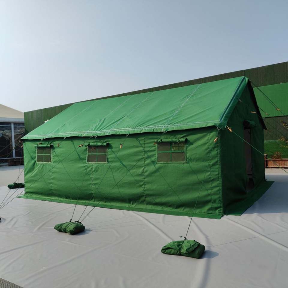 Tente de terrain tactique camouflage en toile imperméable à cadre durable personnalisé, double couche, quatre saisons, une chambre, grande taille