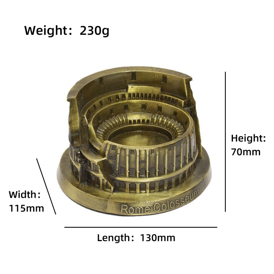 Cendrier en métal bronze personnalisé et durable, souvenir du Colisée romain, avec logo personnalisé, pour cadeaux touristiques