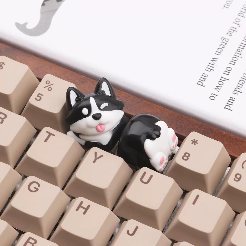 Capuchons de touches personnalisés en résine faits à la main pour clavier mécanique MX, impression 3D, motif Corgi noir, design OEM