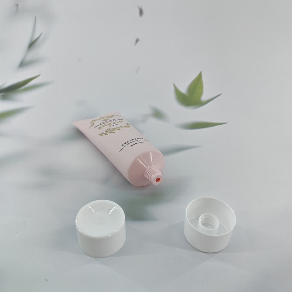 Emballage personnalisé écologique en tube souple en plastique rose mat de 150 ml avec bouchon à clapet pour le lavage du visage cosmétique