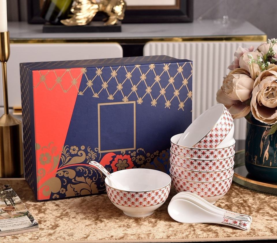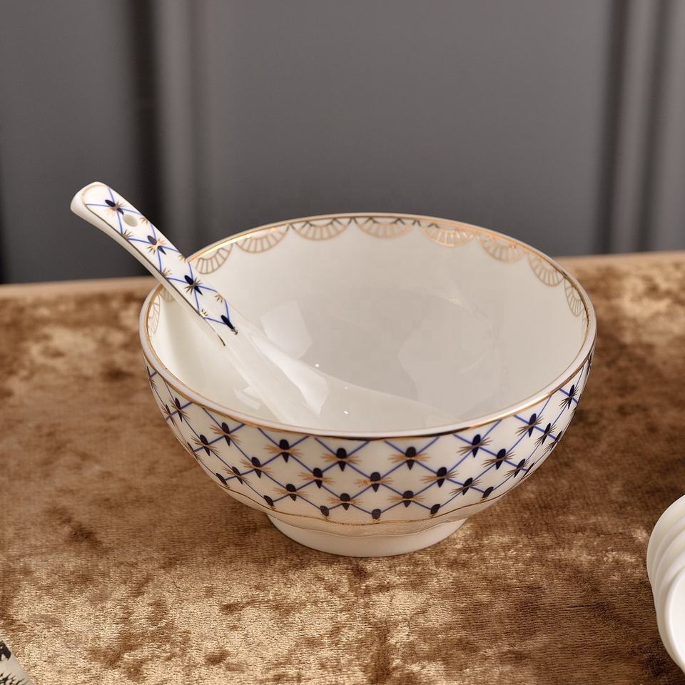 Customized Eco-Friendly Europe Design Russian Royal High Quality Bone China Bowl and Spoon Set