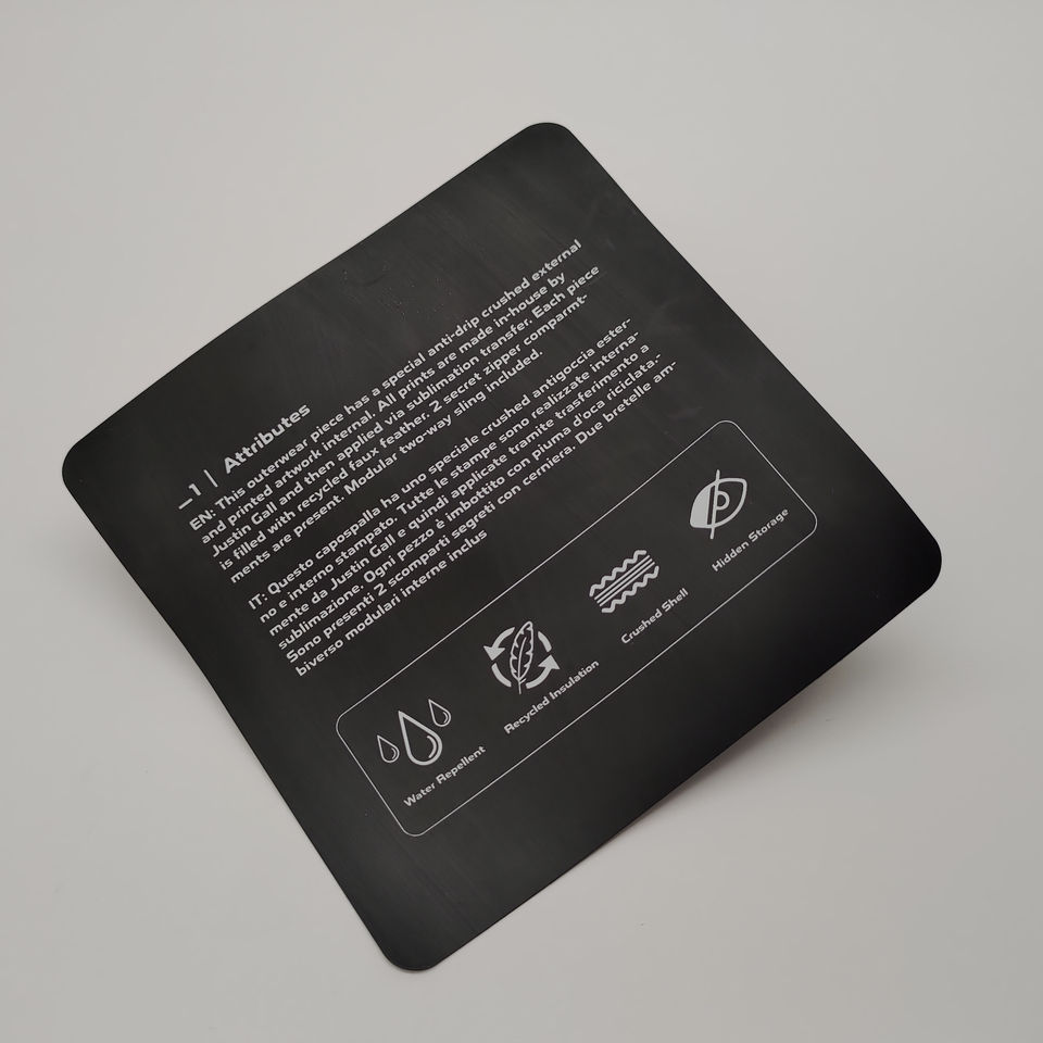Étiquette imprimée en TPU écologique personnalisée Étiquette d'entretien en caoutchouc Résistance à l'eau Étiquette d'information lavable durable