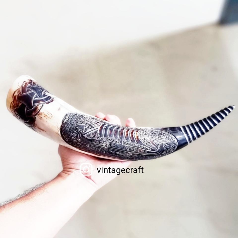 Corne à boire Viking écologique personnalisée, fabriquée à la main, bière artisanale naturelle et bière d'hydromel sculptée par Vintage Craft