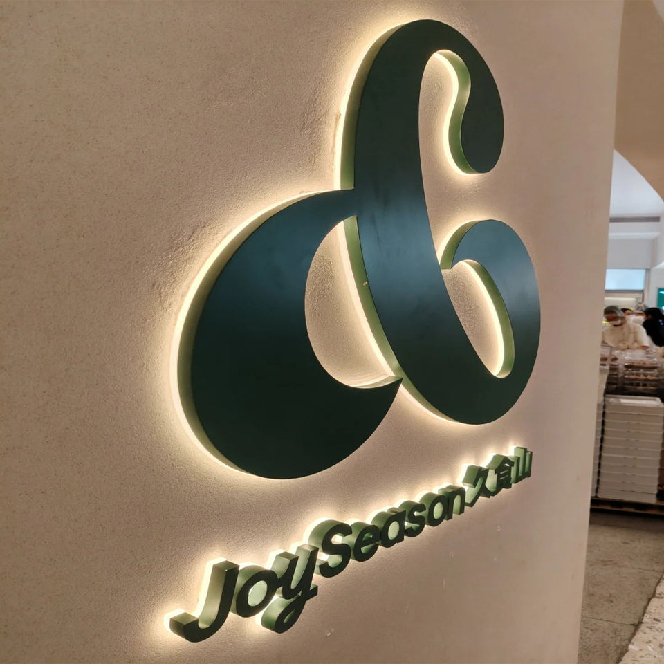 Lettres encastrées murales personnalisées en acier inoxydable chromé brossé écologique avec bandes LED acryliques rétroéclairées pour la publicité