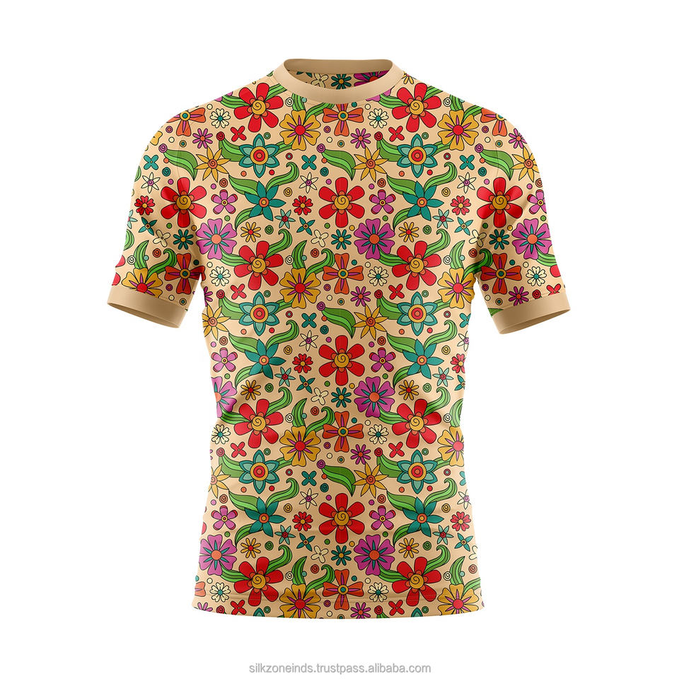 Logo brodé personnalisé T-shirt à col ras du cou pour hommes Vêtements décontractés imprimés all-Over pour hommes et garçons