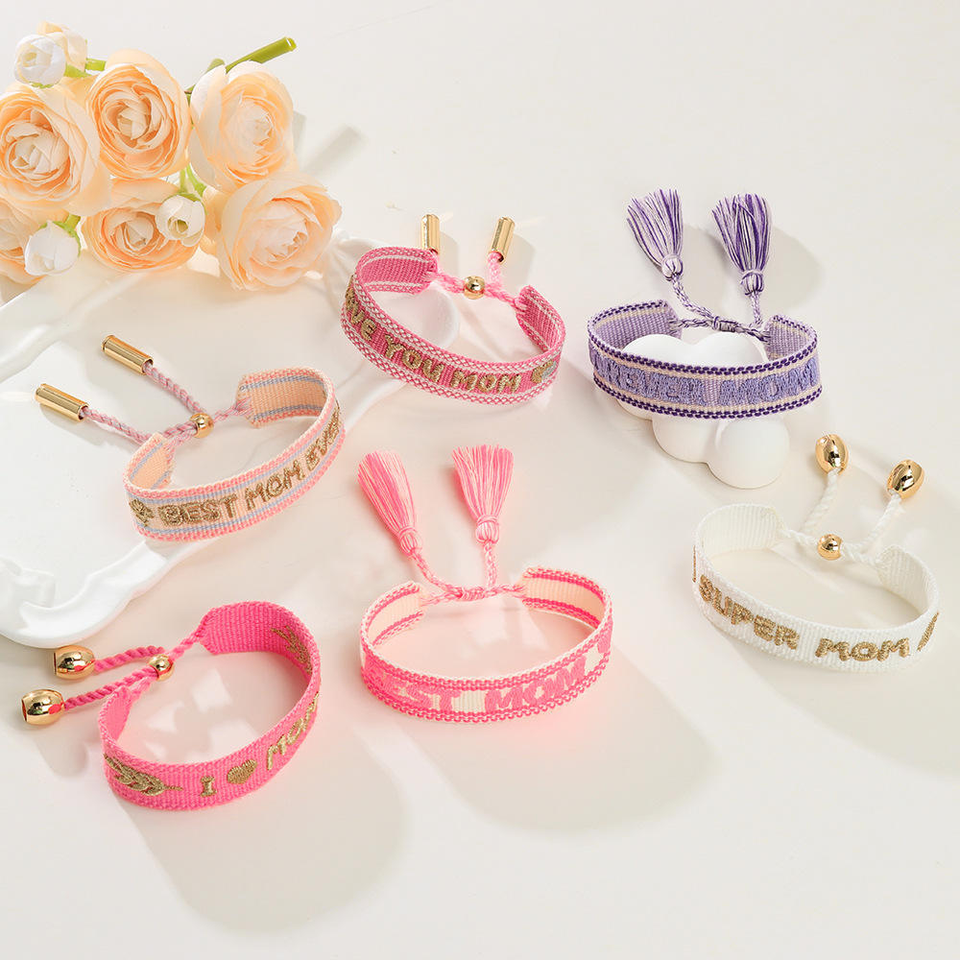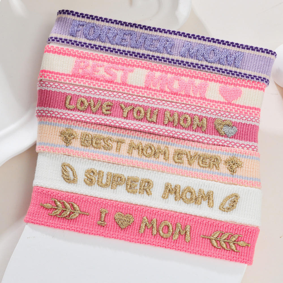 Bracelet personnalisé brodé avec la lettre « Meilleure maman », bracelet tissé réglable pour maman