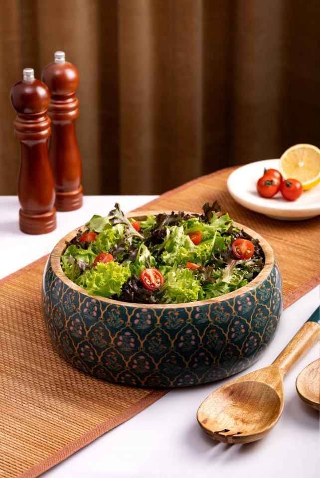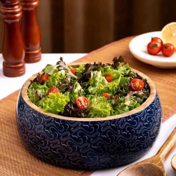 Bol de service en bois massif fait à la main, écologique, résistant au lave-vaisselle, avec impression émaillée personnalisée pour la décoration de la maison