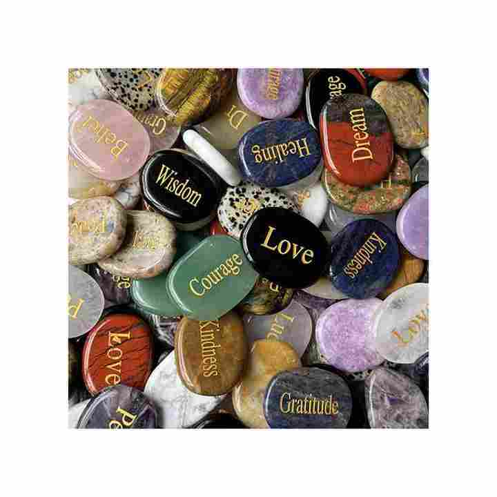 Customized Engraved Polished Palm Inspirational Stones Love Hope Peace Black Pocket Engraving Word Meditation Stone of Prayer