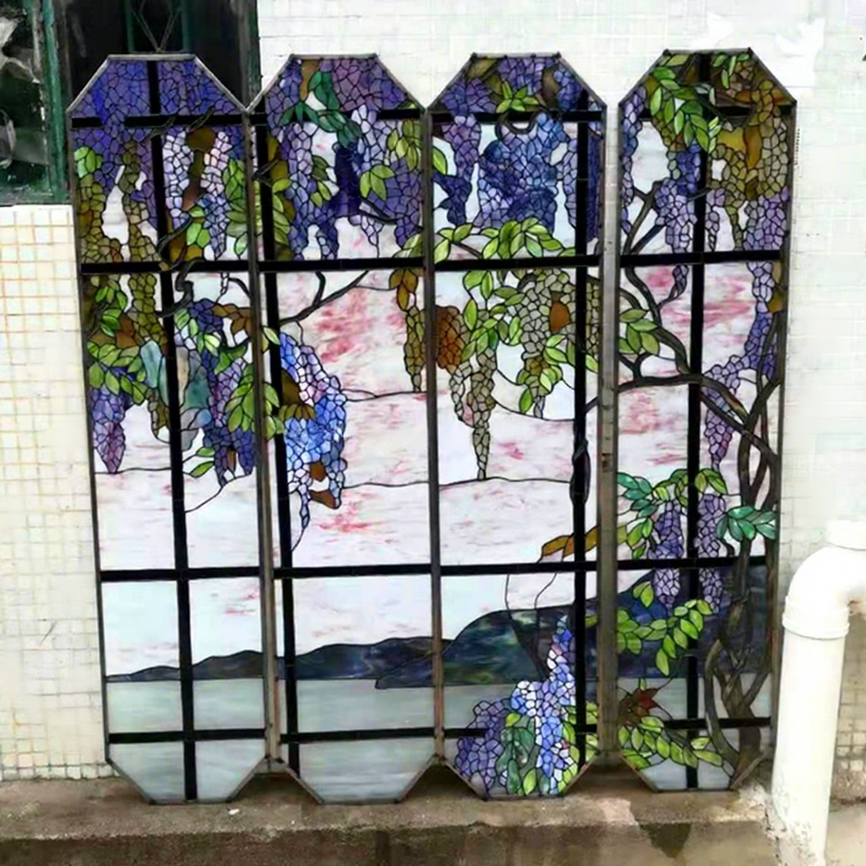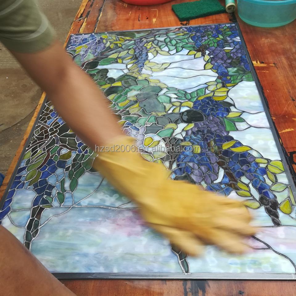 Décoration murale ou de fenêtre en vitrail artisanal style Tiffany, motif glycine de style européen personnalisé, pour rideau solide