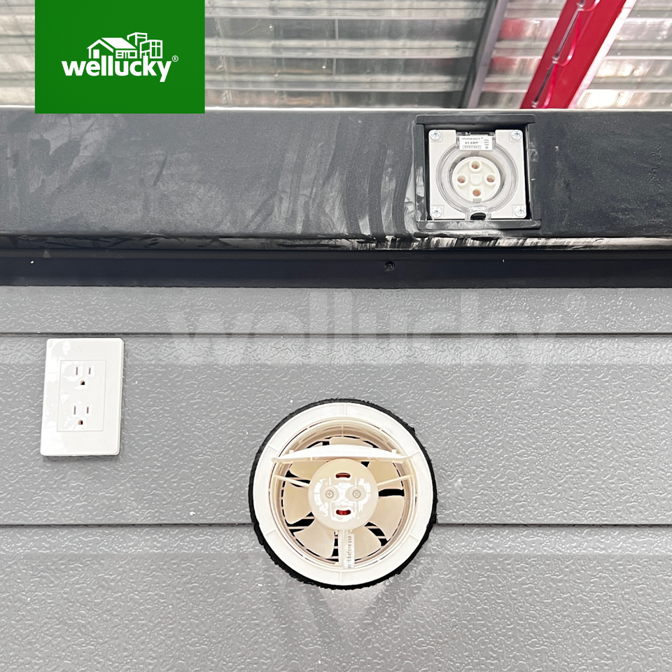 Matériau principal:Structure en acier galvanisé à chaud de 2 mm/3 mm, revêtement de sol en PVC de 1,8 mm