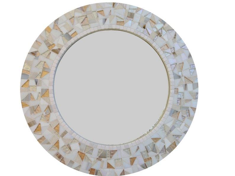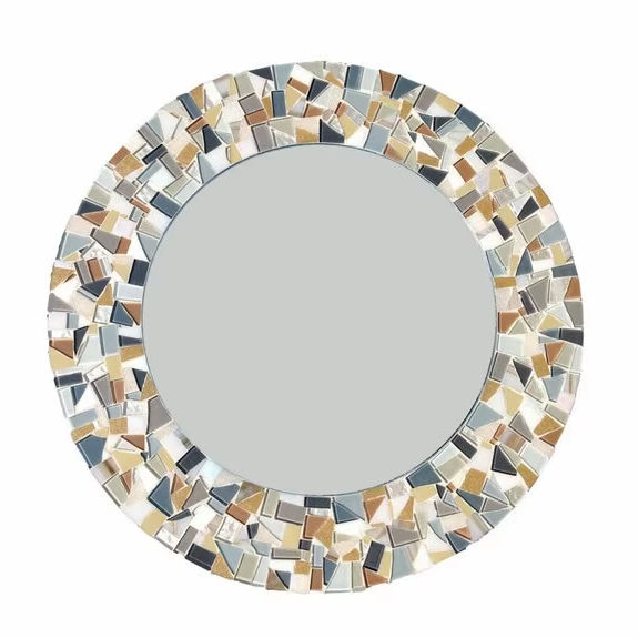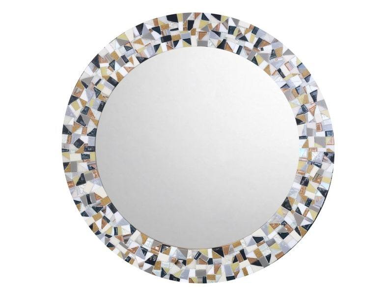 Miroir décoratif personnalisé, unique, fait main, rond, en mosaïque turquoise, cadre classique