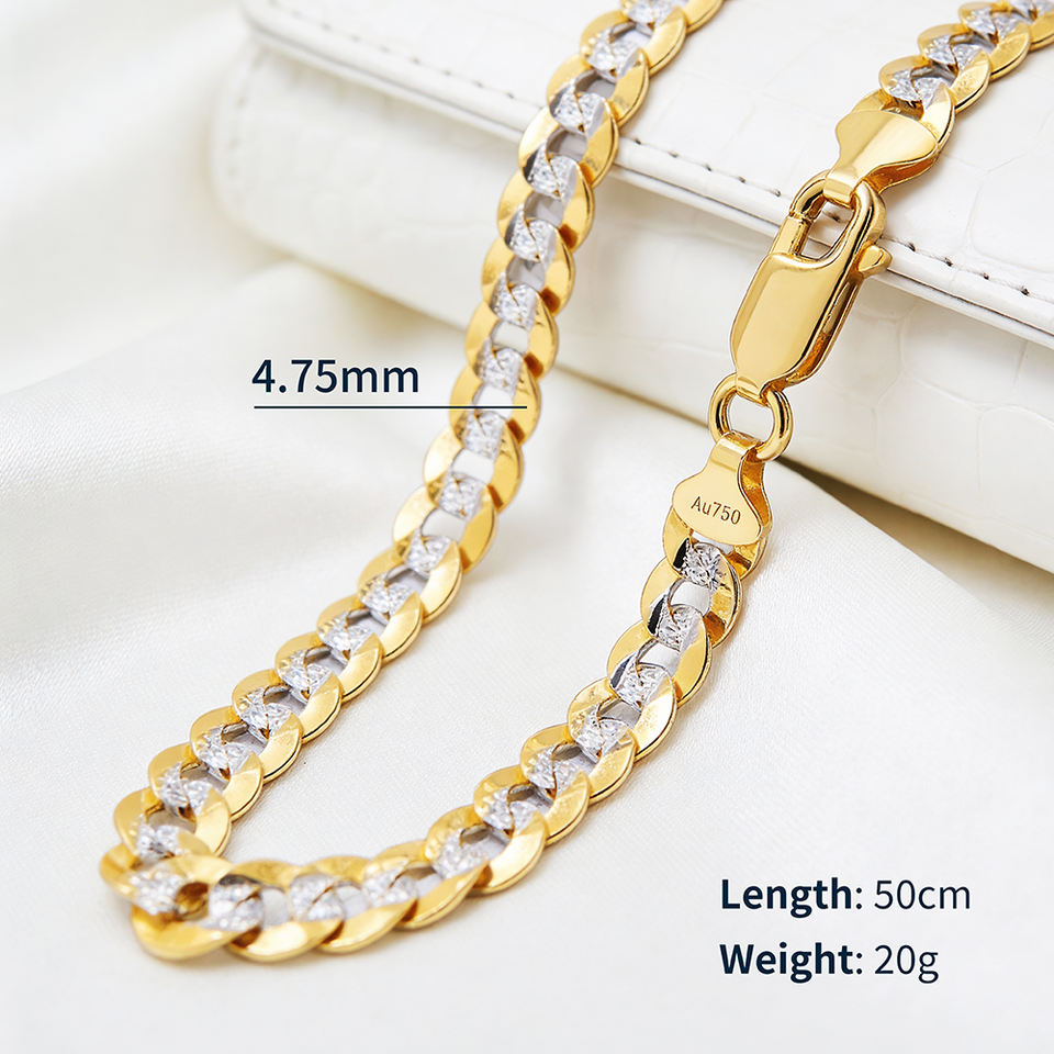 Collier Chaîne Cubaine Hiphop Personnalisé en Or Massif 18K Au750, Bicolore, Chaînes à Maillons de Clavicule, Bijoux Colliers