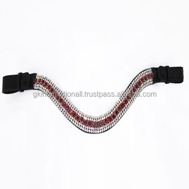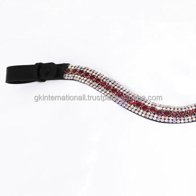 Chaîne de strass en cristal rouge et blanc à cinq rangées personnalisée, bandeau de tête de cheval en cuir fantaisie en taille cob complète