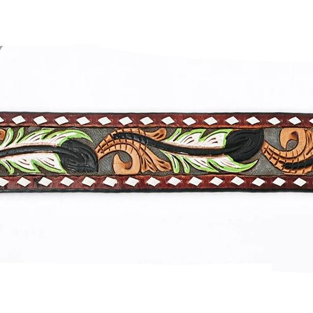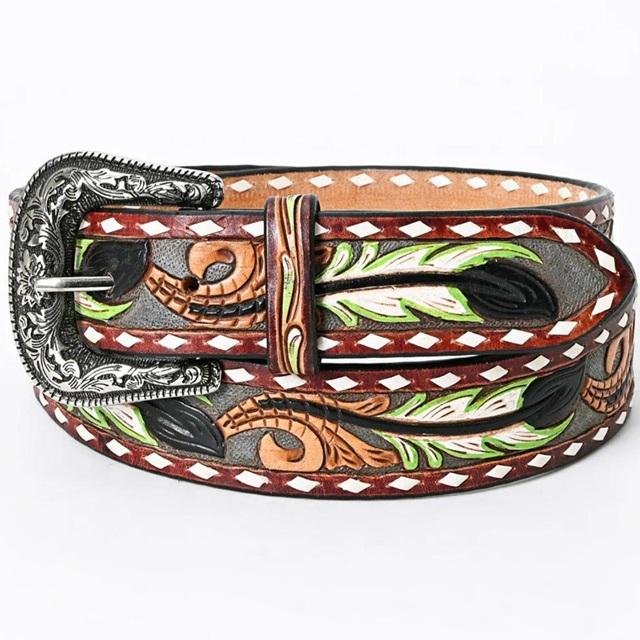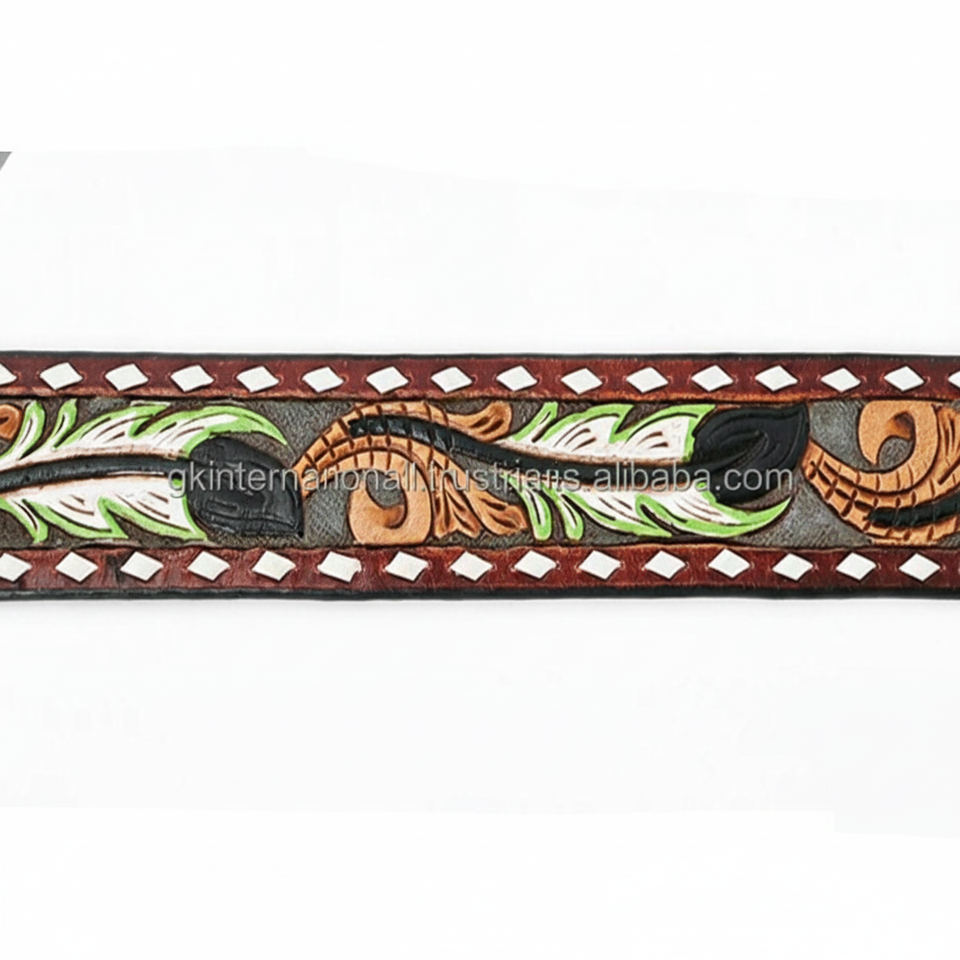 Ceinture d'outillage en cuir occidental faite à la main colorée en relief floral personnalisé avec boucle en laiton antique ensemble