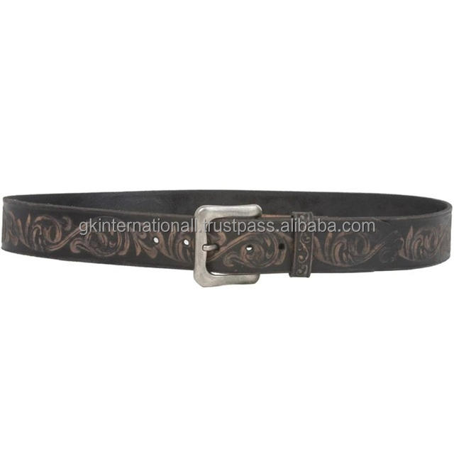 Ceinture en cuir pleine fleur de vache vintage à motifs floraux personnalisés, artisanat à la main, pour hommes et femmes