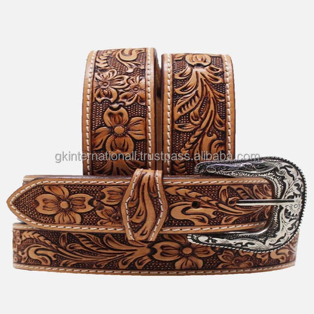 Ceinture en cuir western personnalisée, fleurs gravées à la main, ceinture de cowboy en cuir de haute qualité, gravée et peinte