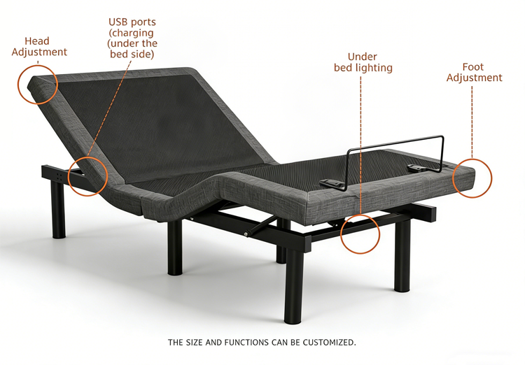Product Name:Adjustable Base Bed with Reinforced Structure Metal Shelf
