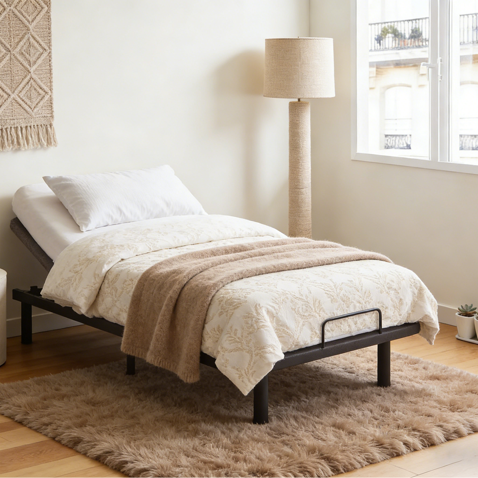 Adjustable Base Bed with Reinforced Structure Metal Shelf
