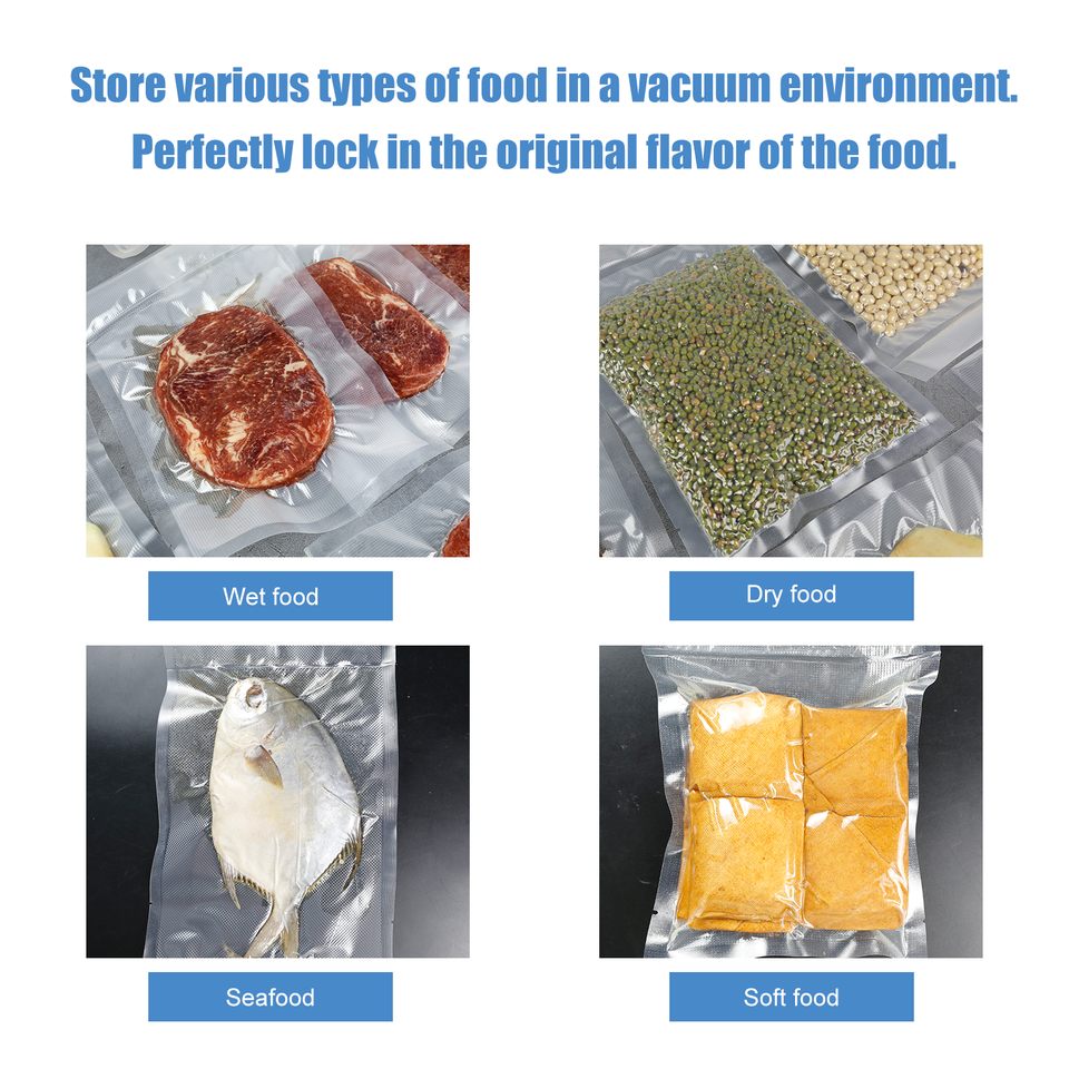 Sac sous vide en plastique à texture gaufrée de qualité alimentaire personnalisé pour le stockage de viande fraîche, de sushi et de congélateur, matériau résistant à la chaleur