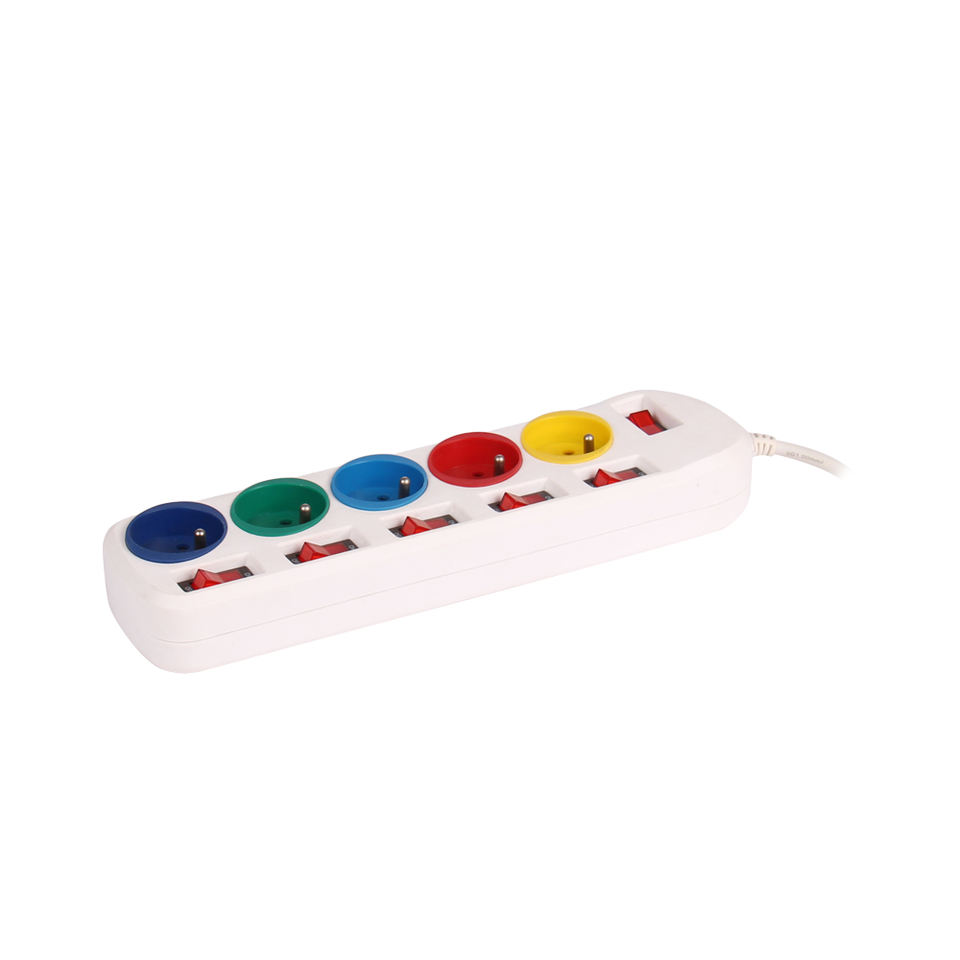 Prise de rallonge standard française personnalisée 5 interrupteurs individuels Pologne carte d'extension électrique ignifuge
