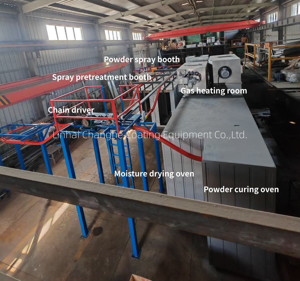 Ligne de revêtement entièrement automatique personnalisée pour peinture en poudre sur substrat acier, cabine de pulvérisation motorisée, four de cuisson avec temps de séchage de 30 minutes 1