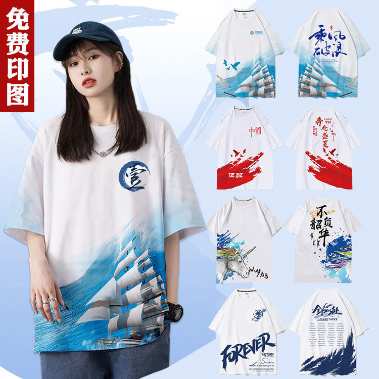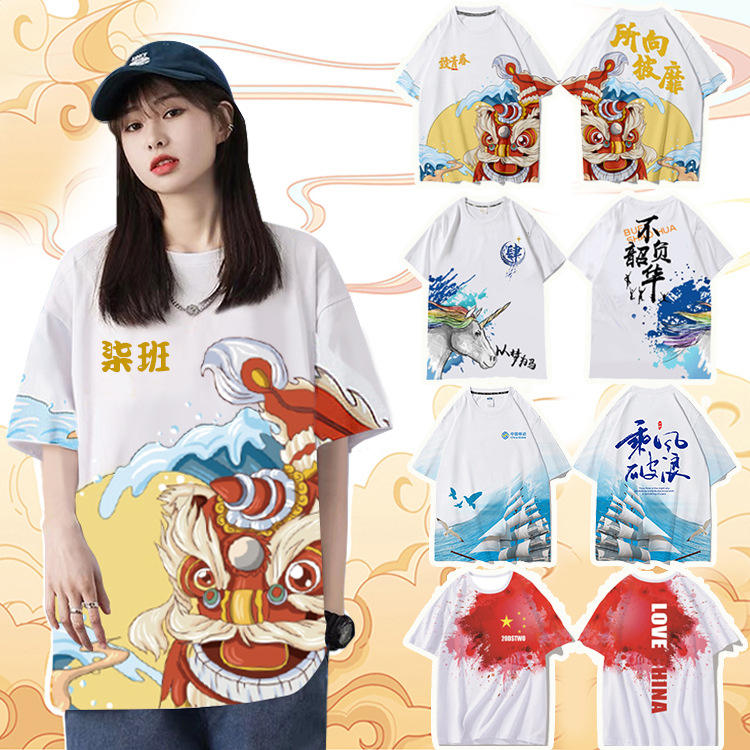 T-shirt personnalisé imprimé sur toute la surface en tissu modal, à épaules tombantes et manches courtes, idéal pour les événements scolaires, les remises de diplômes et les uniformes de classe.