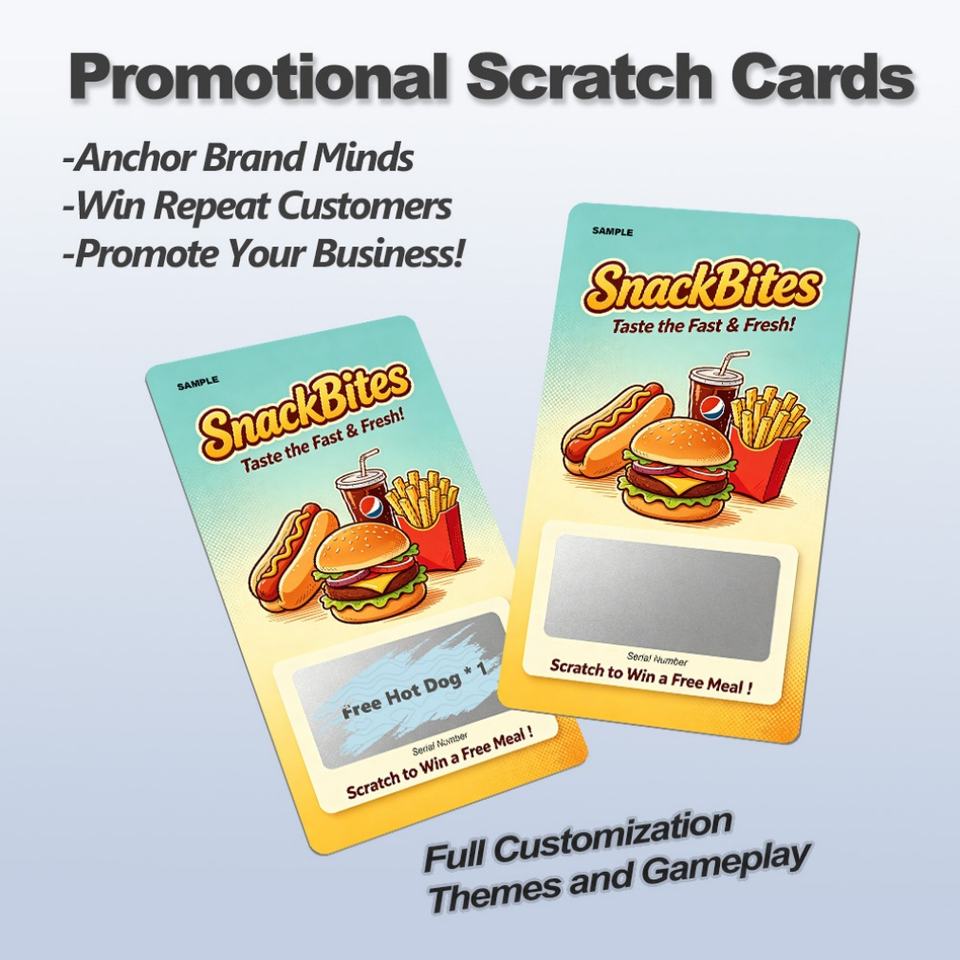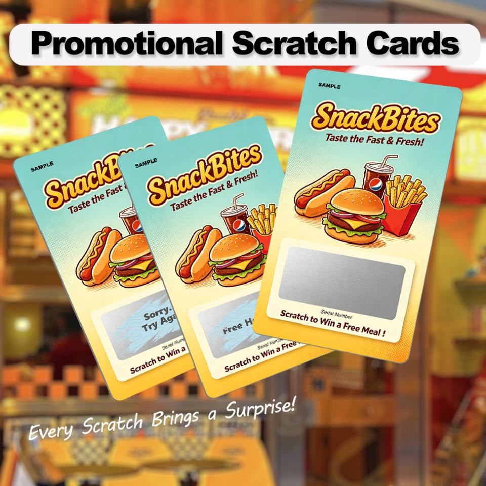 Cartes à gratter personnalisées en carton avec impression numérique couleur, numéros variables, pour promotions commerciales de restaurants, cadeaux de remerciement