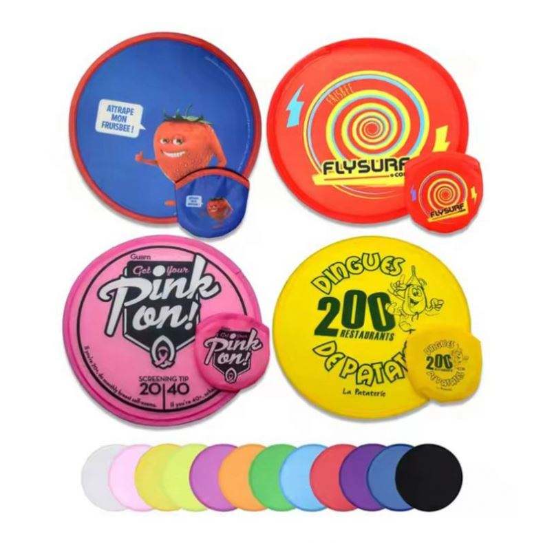 Éventail rond personnalisé imprimé en couleur, pliable et souple en nylon, avec pochette et logo