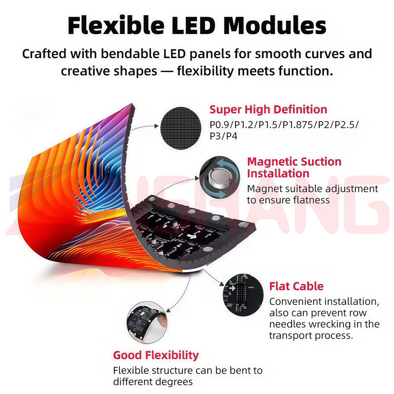 Écran LED flexible personnalisé en couleur pleine, en forme spéciale, mur vidéo créatif pour mur TV et utilisation intérieure/extérieure