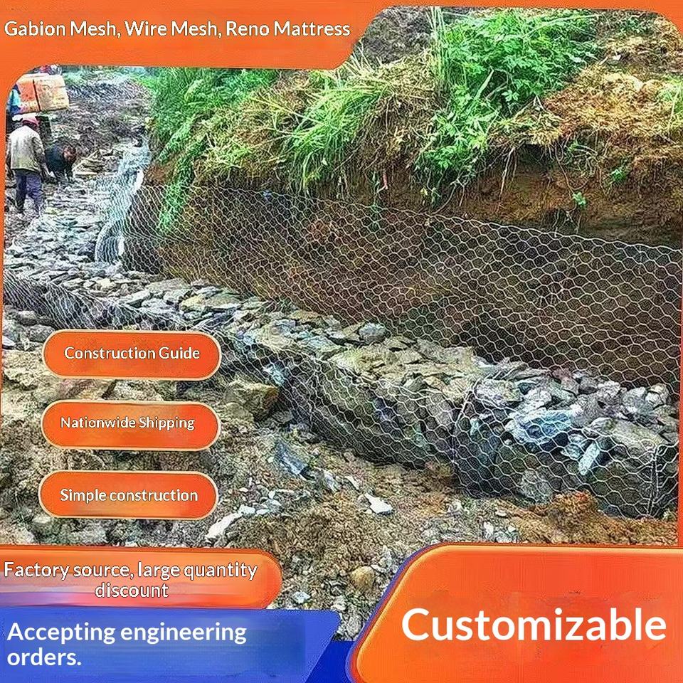 Gabionnet personnalisé en treillis métallique expansé à mailles hexagonales, cage de protection fixe, Renault Cushion, pour protection des pentes en zone fluviale et contrôle des inondations, usine