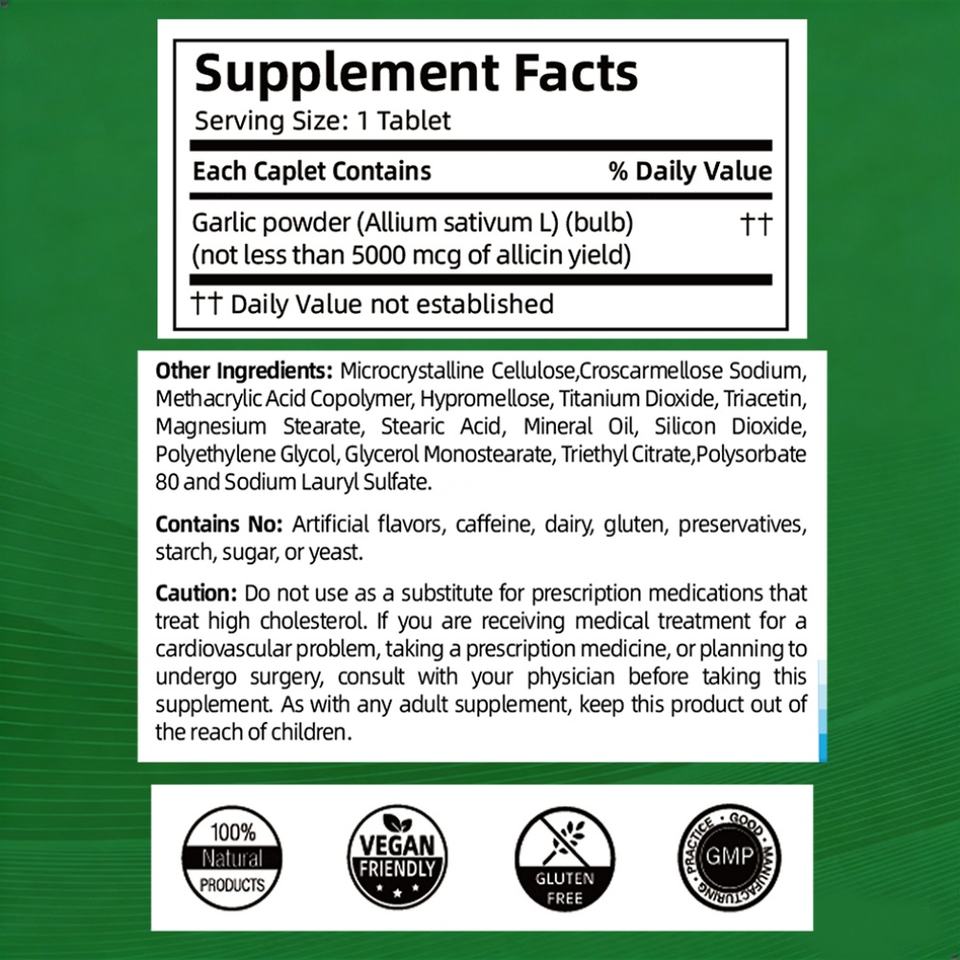 Complément alimentaire personnalisé à base d'extraits de plantes d'ail, formule pour un cholestérol sain, 60 comprimés, complément d'ail