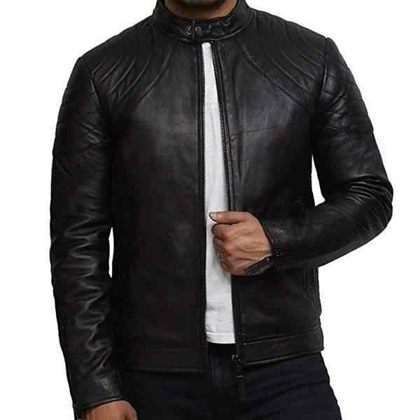 Vestes en cuir noir d'agneau en cuir véritable personnalisées pour hommes
