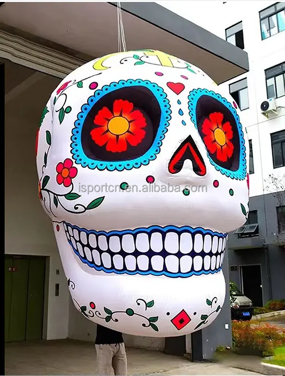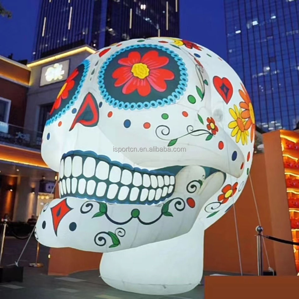 Crâne de Squelette Géant Gonflable Personnalisé Halloween, Modèle Effrayant en PVC/Tissu Oxford, Taille 1m-3m, Logo Personnalisé pour Pub
