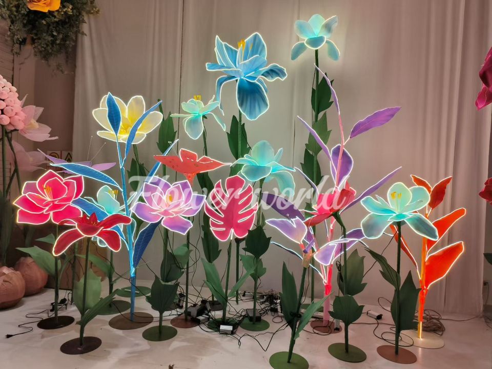 Décorations de fleurs artificielles géantes en iris lumineuses à LED personnalisées pour les mariages en plein air, les parcs à thème et l'aménagement paysager