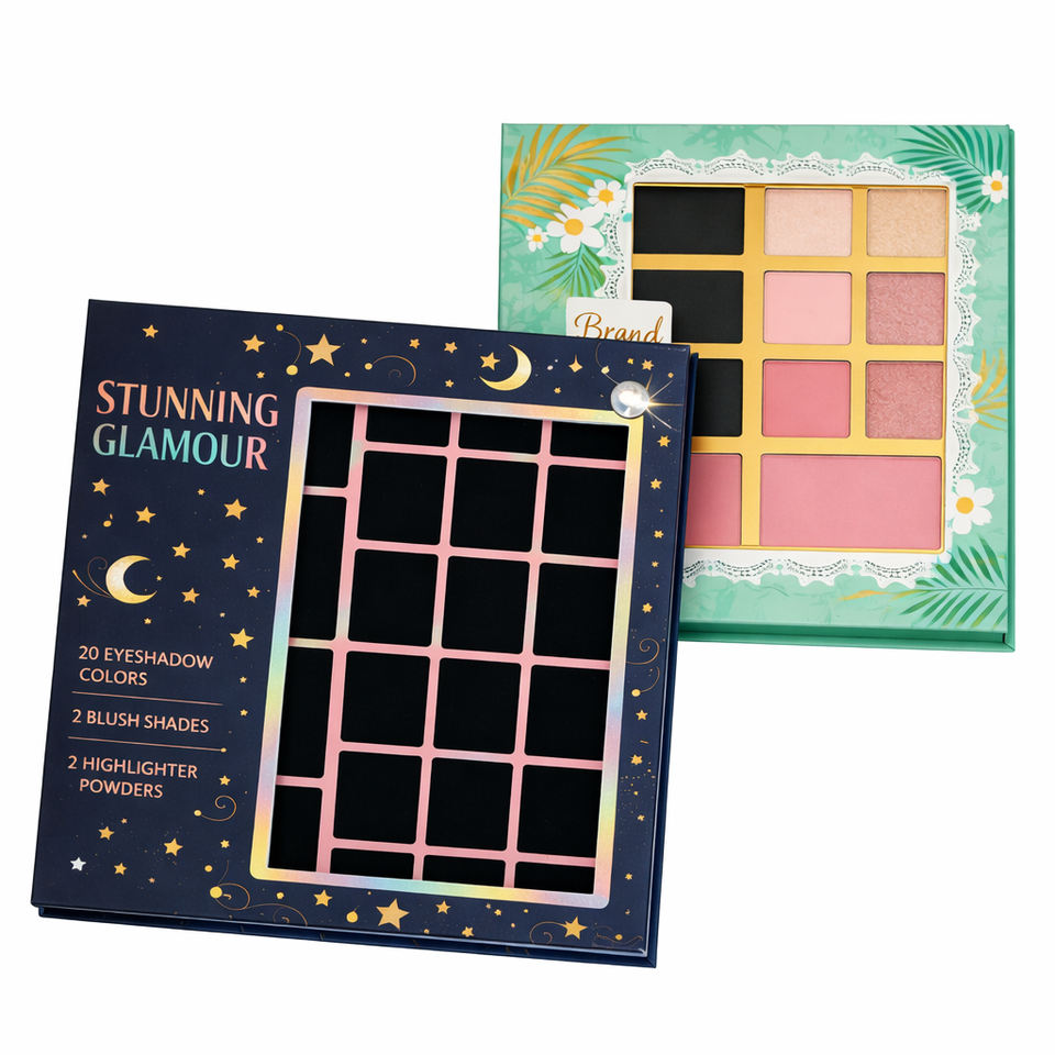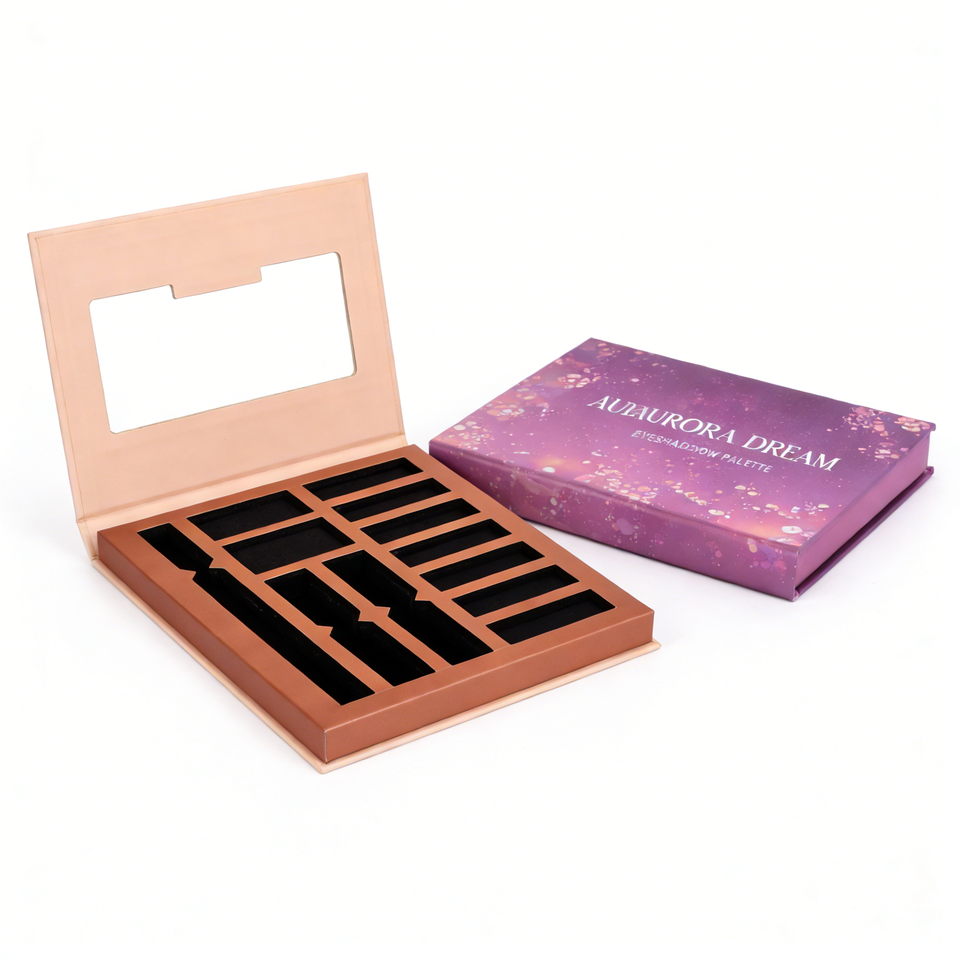 Emballage cosmétique personnalisé en carton recyclé pour palette de fards à paupières avec fenêtre magnétique, logo personnalisé, fabricant