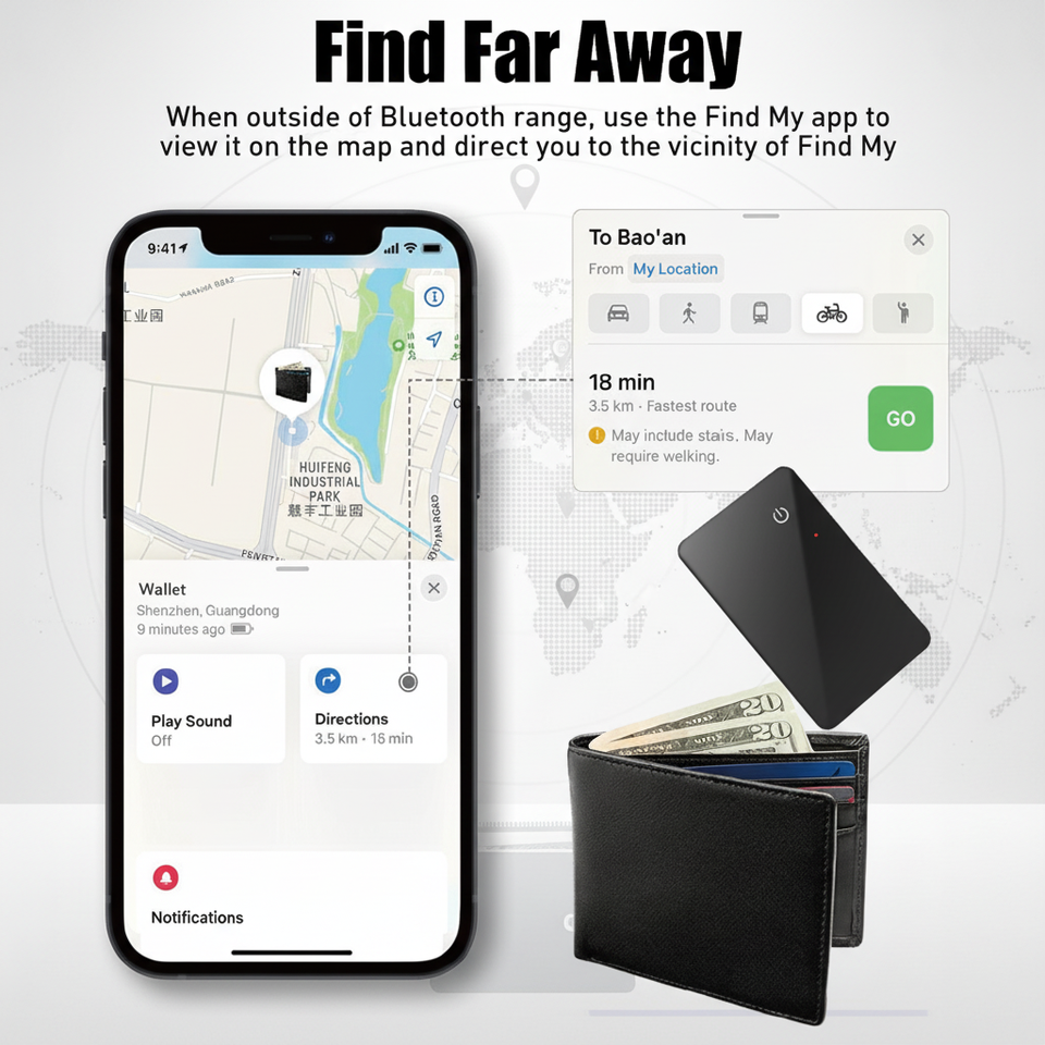 Localisateur de carte personnalisé en verre ultra fin anti-perte, suivi en temps réel, localisation de mon téléphone portable iOS, portefeuille, traceur GPS, balise intelligente