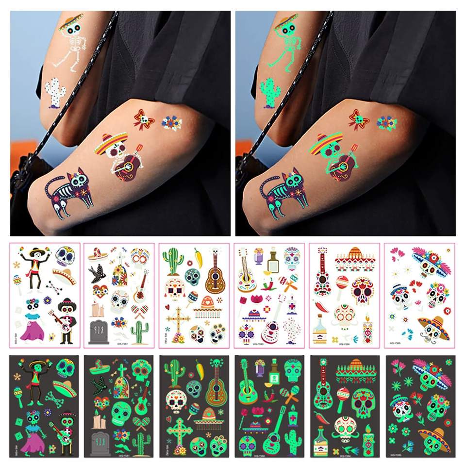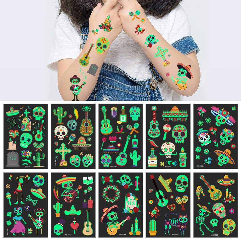 Autocollant personnalisé de tatouage phosphorescent pour garçons et filles, timbre temporaire de tatouage de maquillage de visage d'adulte