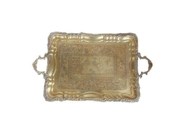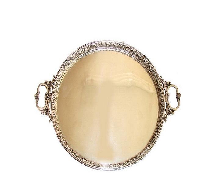 Plateau en laiton fait à la main en or personnalisé avec poignée de plateau plateaux de service rentables dans des styles et des formes uniques