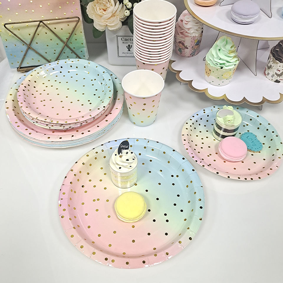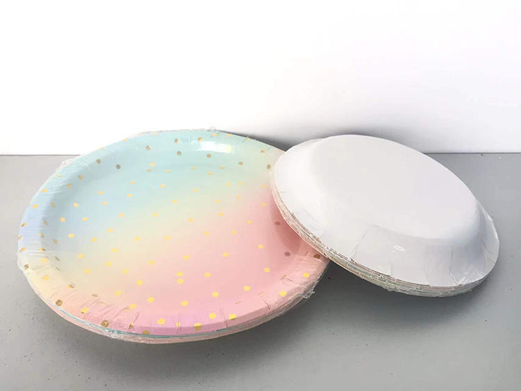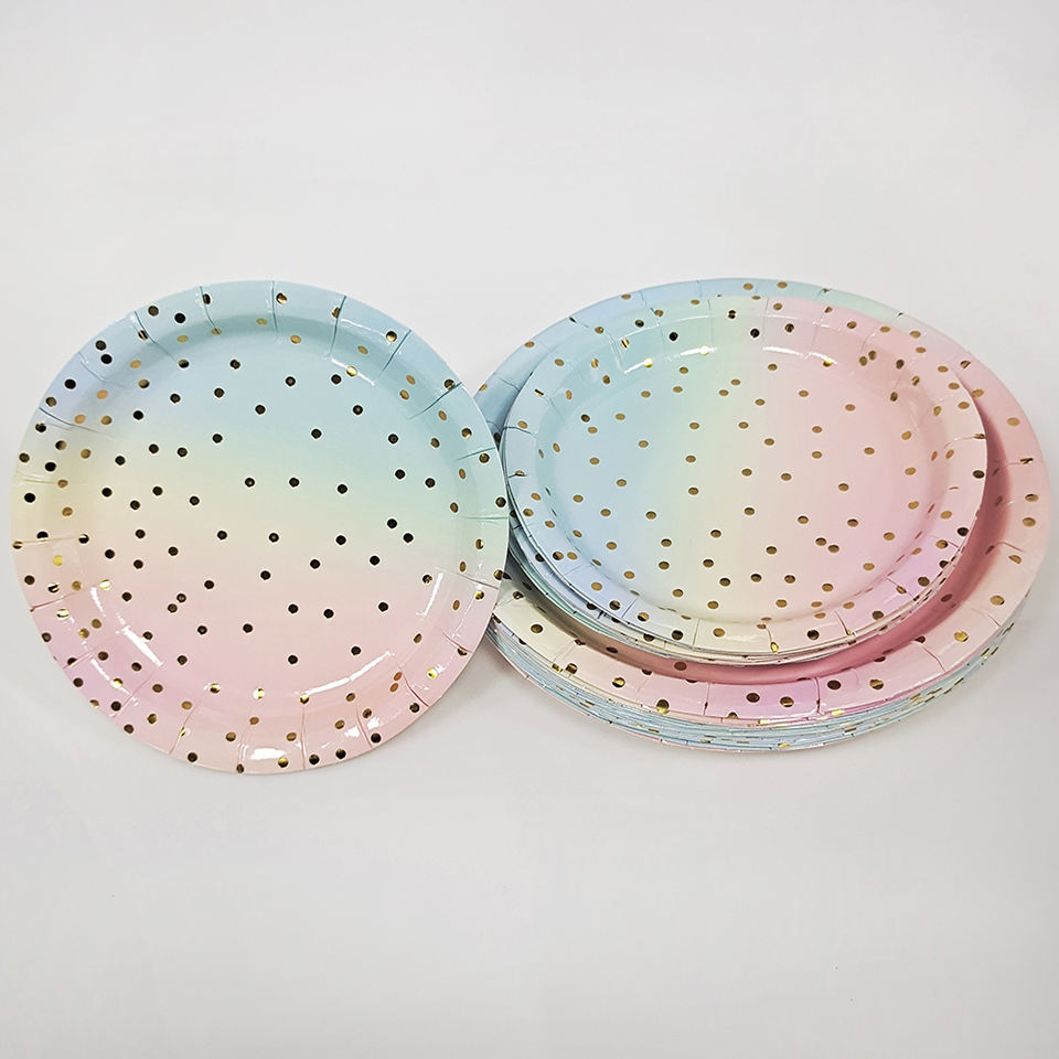 Customized Gradient-colored Gold-plated Disposable Dinner Plates