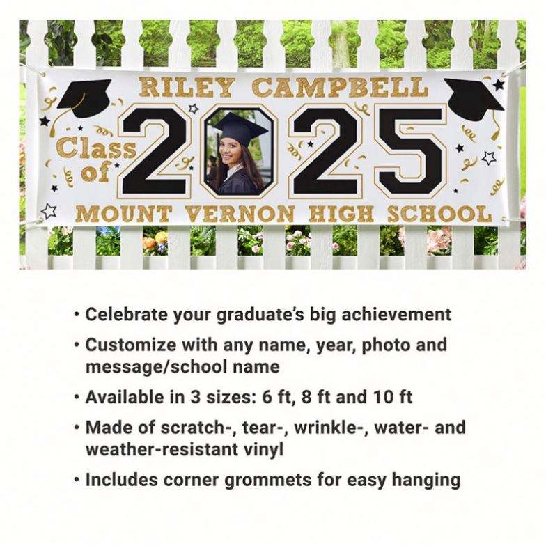Bannière de jardin personnalisée pour la remise des diplômes, en vinyle, avec photo personnalisée, décorations de fête, cadeaux de remise des diplômes 2025