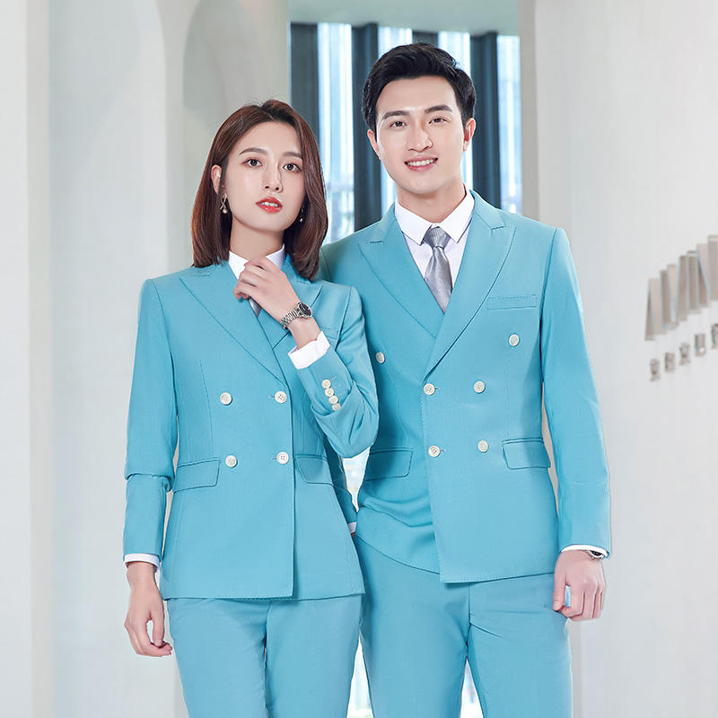 Costume d'affaires gris sur mesure à double boutonnage pour hommes et femmes, vêtements pour les travailleurs de l'immobilier et des bijoux, costume tempéré automne-hiver