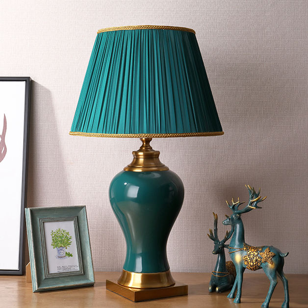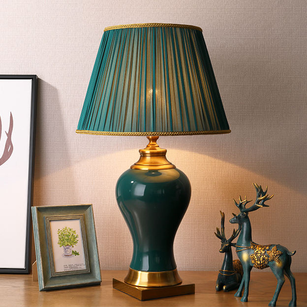 Lampe de table personnalisée en céramique verte, style américain simple, chambre à coucher, style chinois, salon européen, hôtel, lampe de chevet LED