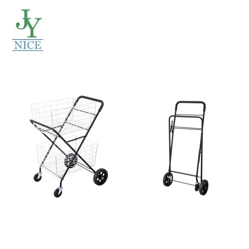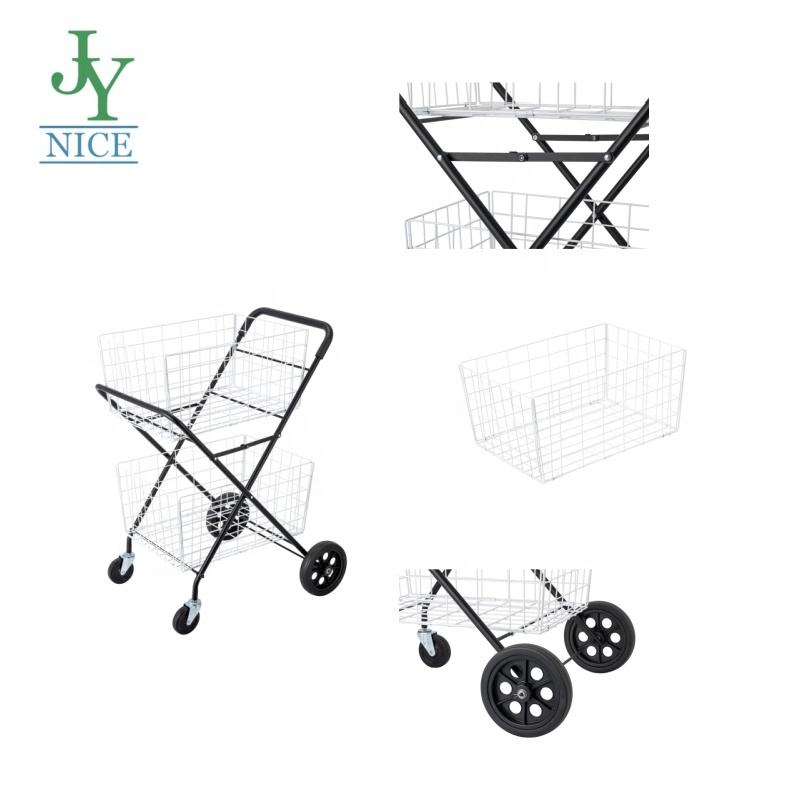 Customized Gym Tennis Collection Cart Supermarket Folding Net Storage Pulley Metal Shopping Cart