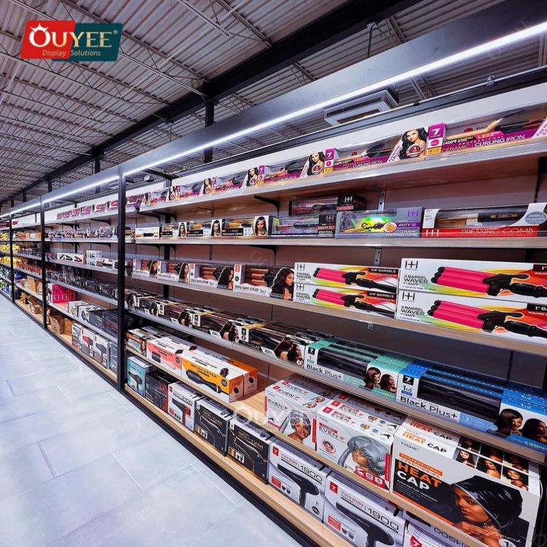 Présentoir personnalisé pour magasin de produits de beauté et de meubles pour salon de beauté Présentoir pour étagères à perruques intérieures pour salon de coiffure