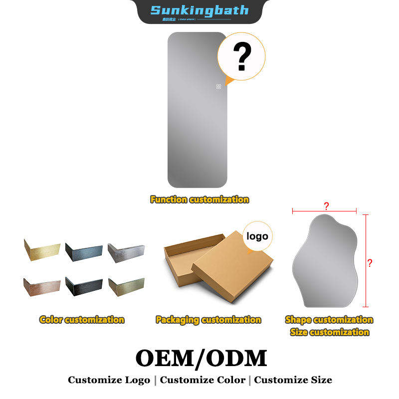 Miroir de salon mural personnalisé avec coupe-cheveux, interrupteur tactile intelligent, anti-buée, éclairage LED, cadre en cuivre